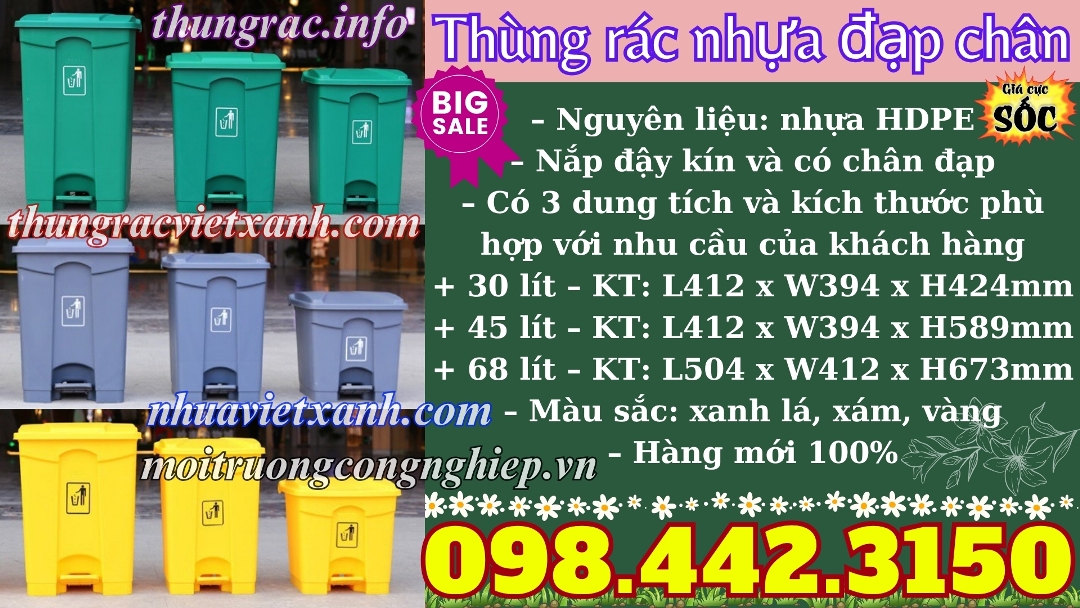 *. Đặc điểm của thùng rác đạp chân nhựa HDPE dung tích 30L – 45L – 68L: